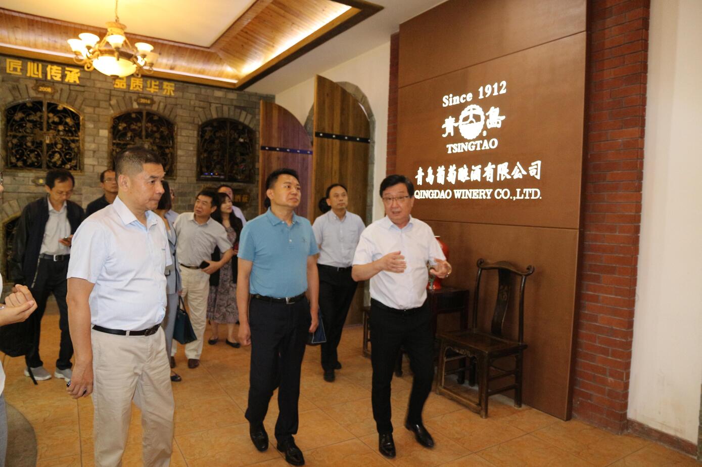 7月15日上午,集團黨委書記、董事長王達,集團黨委委員、副總經(jīng)理王少虹在華東·百利酒莊會見了商務(wù)部貿(mào)易救濟調(diào)查局王新副局長及商務(wù)部駐青特派辦、省商務(wù)廳、市商務(wù)局領(lǐng)導(dǎo)一行。王達董事長對王新局長率隊前來飲料集團調(diào)研指導(dǎo)工作表示熱烈歡迎,隨后從行業(yè)發(fā)展、政府扶持、協(xié)會引領(lǐng)、稅收支持等方面進行了情況匯報,并向與會領(lǐng)導(dǎo)介紹了華東葡萄酒堅持“青島制造、中國典范、世界標(biāo)準(zhǔn)”的品牌定位,同時希望國家部委、各級政府、行業(yè)協(xié)會能對本土企業(yè)和民族品牌在政策引導(dǎo)、對外交流、宏觀調(diào)控等方面給予大力支持。王少虹總代表華東公司介紹了企業(yè)發(fā)展和產(chǎn)業(yè)布局情況。