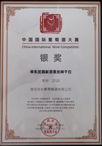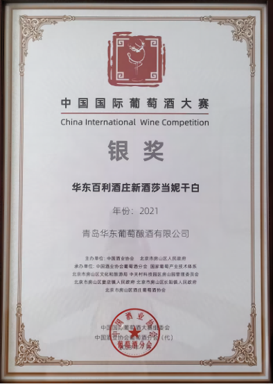 華東莊園新酒薏絲琳干白、華東百利酒莊新酒莎當妮兩款產品榮獲中國國際葡萄酒大賽銀獎