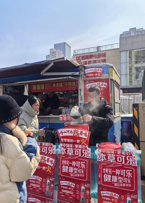? ? ? ?2月23日,2024年青島蘿卜、元宵、糖球會在海云庵正式開街,時隔四年,又回到老地方,嶗礦公司在海云庵主街嘉禾路攜嶗山熱可樂再次點燃了冬天里的一把火。與此同時,中山路步行街商場內(nèi)、西海岸商圈嶗山可樂同步熱促,為市民驅(qū)趕雪后的嚴寒,成為島城一道靚麗溫暖的風景線。